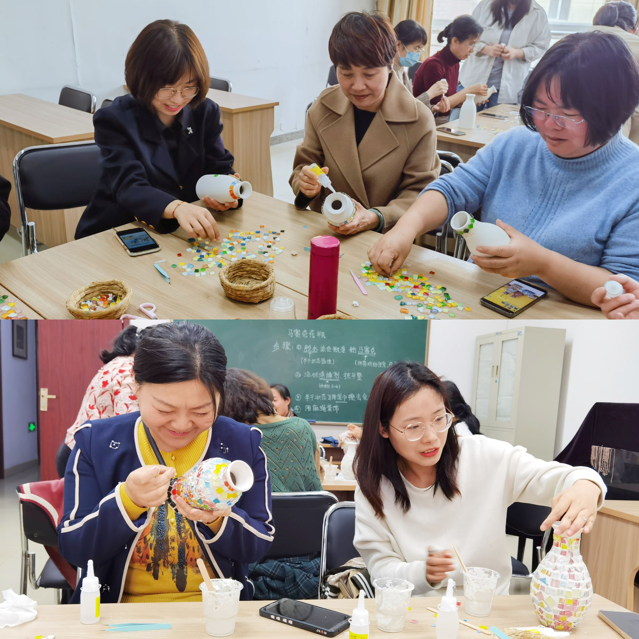 通过马赛克花瓶制作活动,老师们不仅学习了新的手工制作技能,锻炼了动手动脑能力,感受到了手工制作的乐趣,还获得了美好的艺术体验和艺术享受,增进了彼此之间的友谊与交流,度过了一个充实愉快的下午。虽然时间向前,愿女神们心怀柔软,永葆青春!