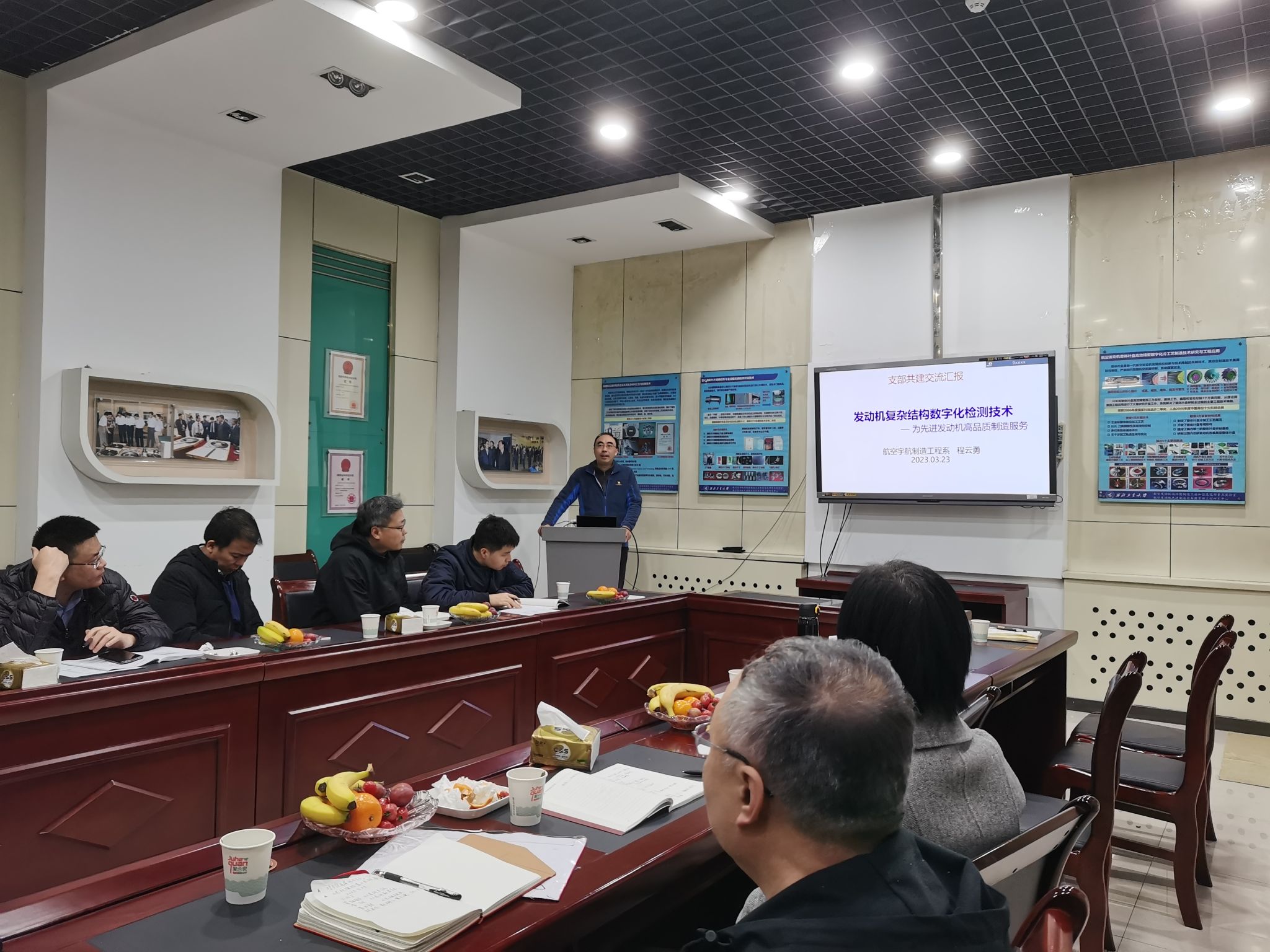 为深入学习贯彻习近平新时代中国特色社会主义思想和党的二十大精神,不断强化党建与业务融合共进,2023年3月23日,best365网页版登录官方网站航空宇航制造工程系第一党支部邀请了“大国工匠”何小虎所在的西安航天发动机有限公司35车间党支部来校交流,开展了支部共建活动。会议由支部书记王明微同志主持,党员、入党积极分子等共20余人参加。
