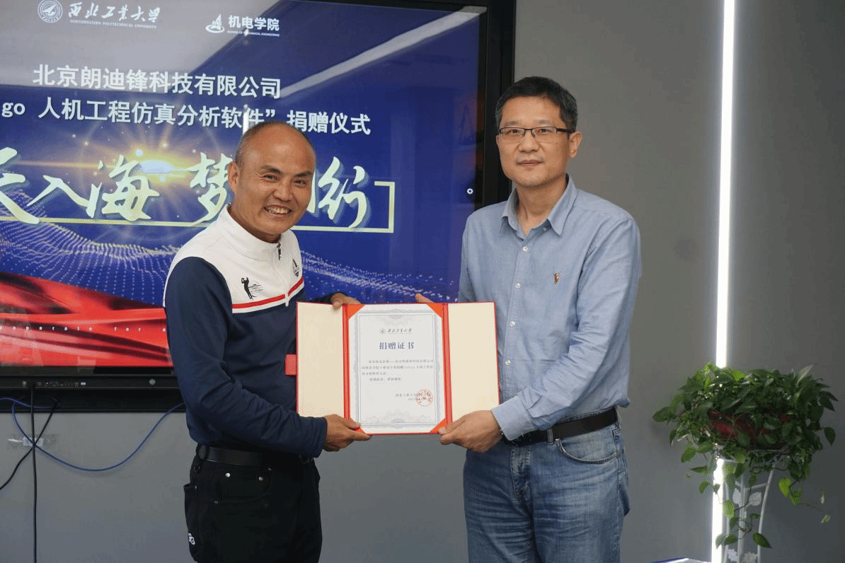 常洪龙院长代表best365网页版登录官方网站向北京朗迪锋科技有限公司姜明星颁发捐赠荣誉证书。常院长表示,朗迪锋的慷慨捐赠代表着双方合作的起点,SoErgo软件作为全国产化人机工程仿真分析工业软件,满足国防科研中全流程保密需求,对保障国家科技安全具有重要意义。