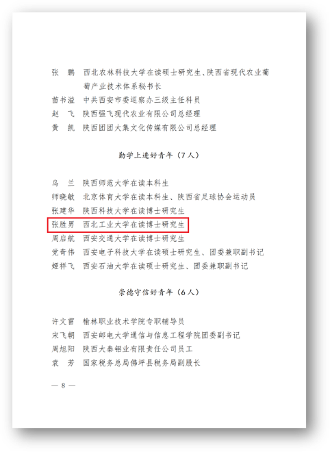 张胜男,best365网页版登录官方网站2020级航空宇航制造工程专业博士研究生,连续两年科研成果综测值达1000分,是全院唯一综测一直保持年级前列的博士生,累计获得先进个人荣誉奖励40余项,包括国家级2项,省部级2项,专项级3项,全校唯一获评第十届“陕西好青年”荣誉称号(全省7人)。作为队长或项目负责人带领身边的同学参加各类专业学科竞赛,累计获得科技竞赛奖励近10项,其中国家级2项,分别为第十五届中国研究生数学建模大赛三等奖(队长)、第六届全国数学竞赛二等奖(个人赛道)。