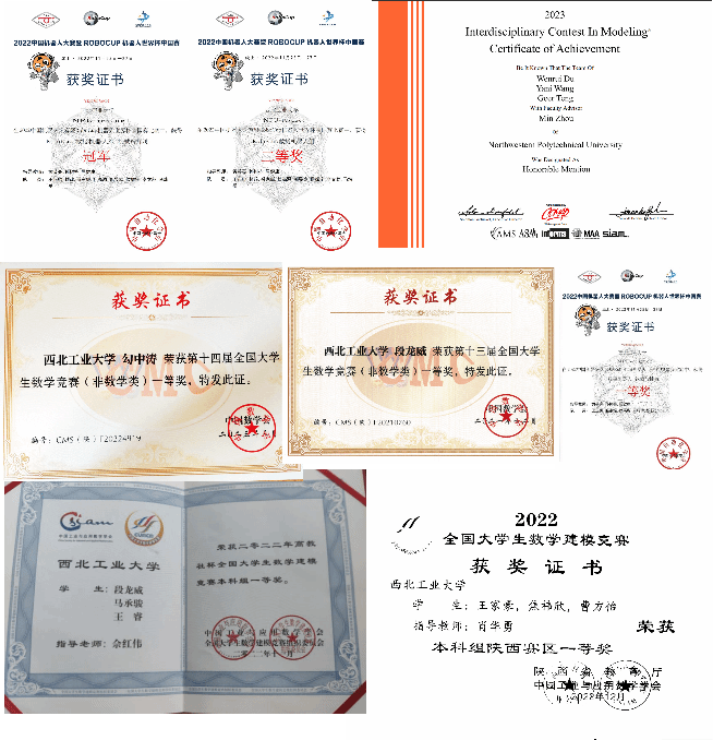 开拓进取,突破自我:学术论文获得了国际专家的认可,被第七届计算机技术与机械电气工程国际学术论坛收录,并受邀参加会议;积极参加机器人、数模、ican大赛等都获得了国家级奖项,获数模美赛国际特等奖提名;自主设计的新型仿生机器鱼晋级海洋航行器国赛;