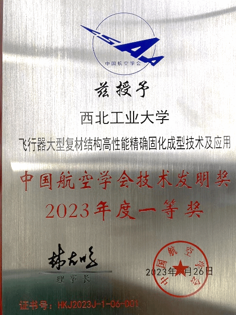 “飞行器大型复材结构高性能精确固化成型技术及应用”获2023年中国航空学会技术发明奖一等奖;