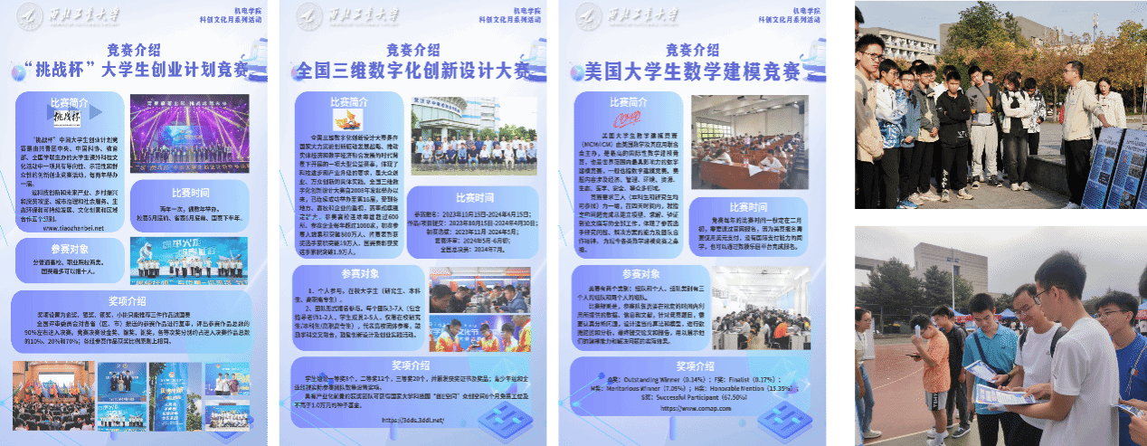 团队成员广泛参与“互联网+”大学生创新创业大赛、“高教杯”全国大学生先进成图技术与产品信息建模创新大赛等多项顶级赛事,成果斐然。团队积极举办创新创业文化月,大力宣传各项科创赛事,开展线上线下推广交流,让更多学生了解主要赛事,有效地推动了学院科创氛围的形成与升温。
