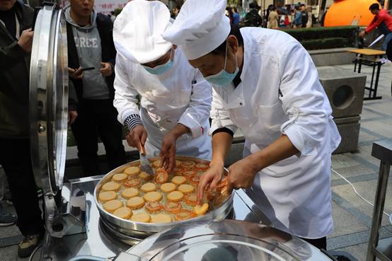 同时学校专程邀请了制作柿饼的师傅,早早的准备好了制作柿子饼的食材,研究生会的同学提前在校歌墙前搭好了棚子,以供制作柿子饼。