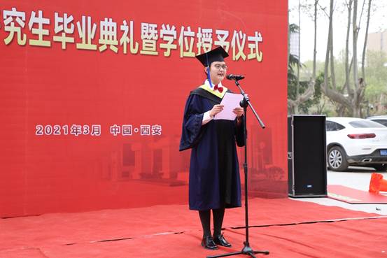 典礼伊始,全体起立奏唱国歌,接着,学院党委副书记(主持工作)刘朝亚老师宣读《关于表彰2021届研究生优秀毕业生的决定》,best365官网江仁政等38名硕士研究生、赵涛等6名博士研究生获得best365网页版登录官方网站2021年“优秀毕业生”荣誉称号,希望受表彰的同学在今后的学校和工作中再接再厉,勇做走在时代前列的奋进者、开拓者、奉献者,为母校争光添彩,为祖国建功立业。