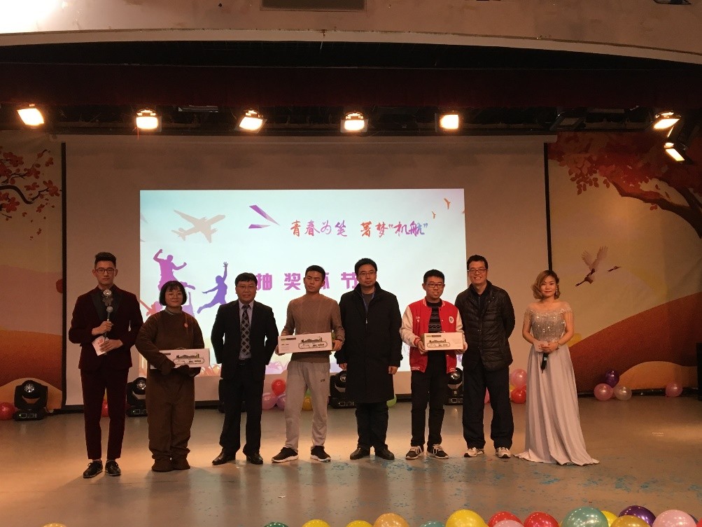 另外,老师与晚会赞助嘉宾的抽奖环节也是本次晚会的一大亮点。晚会共进行了三轮抽奖,提供的奖品十分丰厚(一等奖是由中联重科提供的精美车模5个),共计19名幸运儿获得本次晚会的大奖。