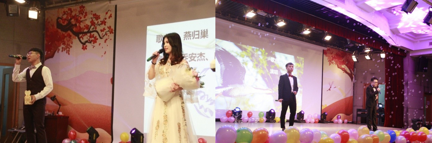 各种节目轮番登场,精彩纷呈。研一新生乔安杰、闫怡含深情对唱的古风歌曲《燕归巢》,研三学长包程凯与王志敏带来的歌曲《鸿雁》都让我们大饱耳福。