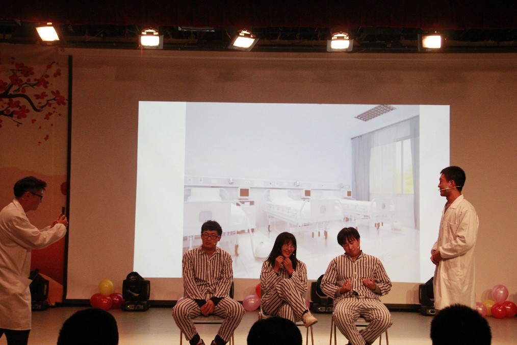 精彩还在继续。由研一新生何浩等同学自导自演的小品《手机病症实验室》给大家留下了深刻的印象,幽默的台词,传神的肢体语言,赢得了台下阵阵掌声。