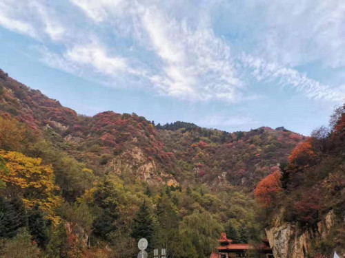 秋高气爽,层林尽染,正是登高远足的好时节。秋天的翠华山,红红的柿子高挂枝头,五彩缤纷的树木引人注目,山里的空气格外怡人。
