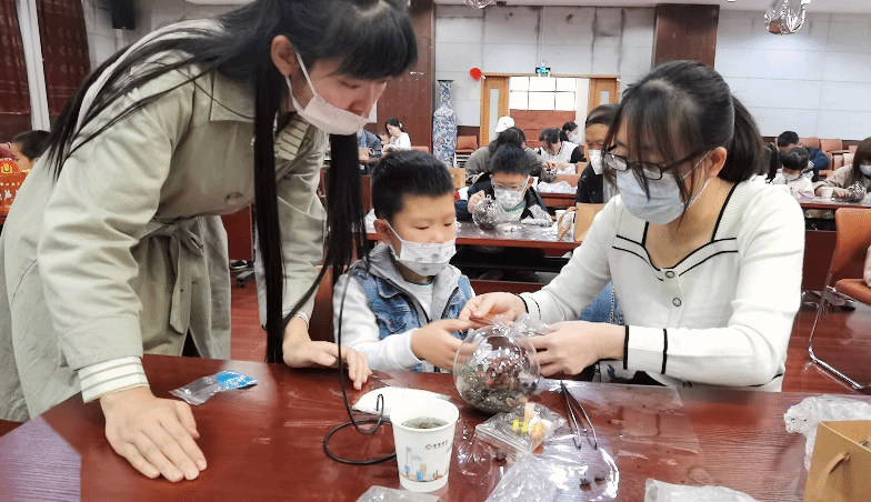 活动以“微世界,塑未来”为主题,进行了绿色微景观亲子DIY制作。邀请非遗继承人任老师讲授了微景观的制作过程和技巧,并进行了现场指导。孩子们眼里的小世界通过小小的植物和美丽的装饰逐步呈现出来。